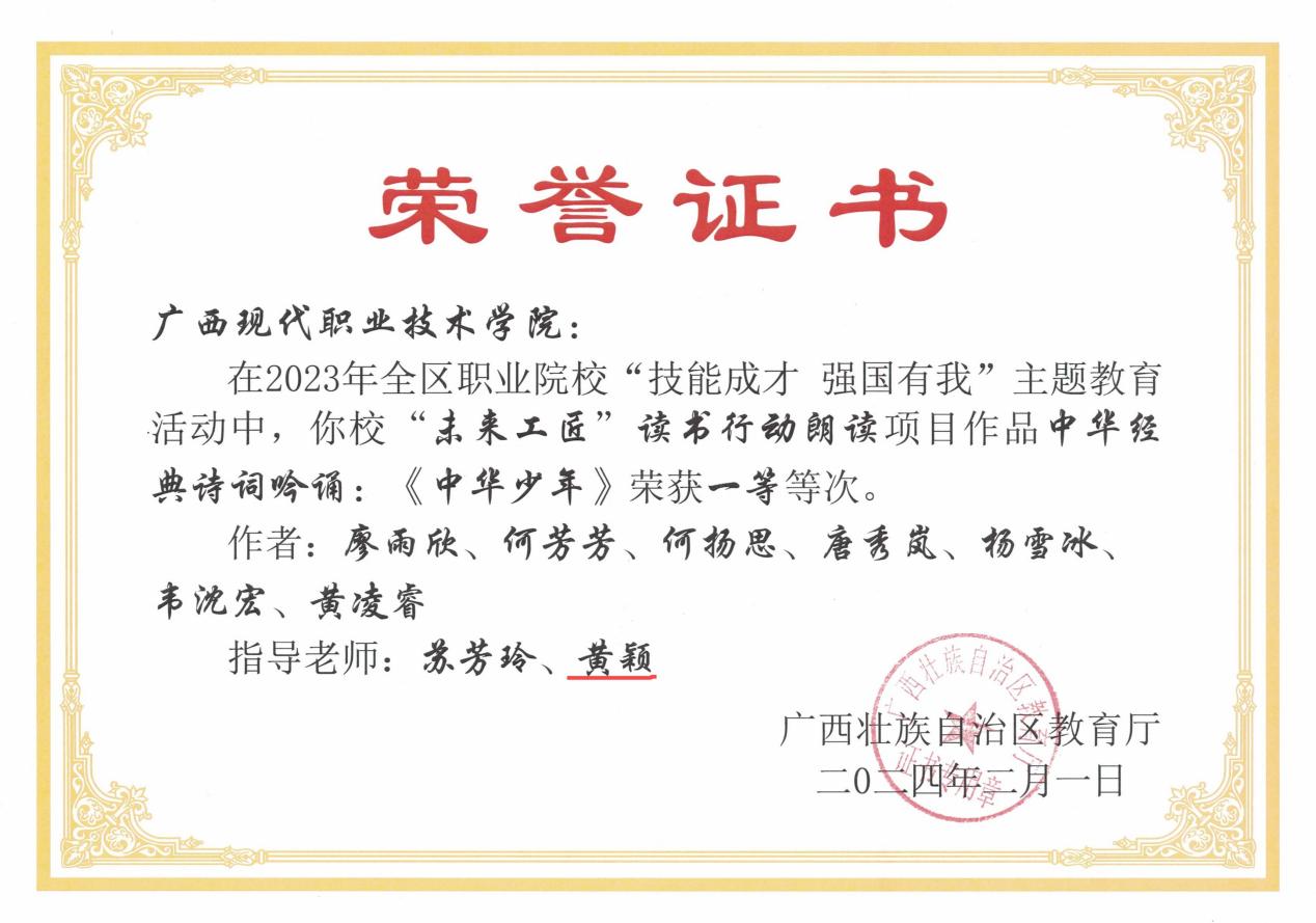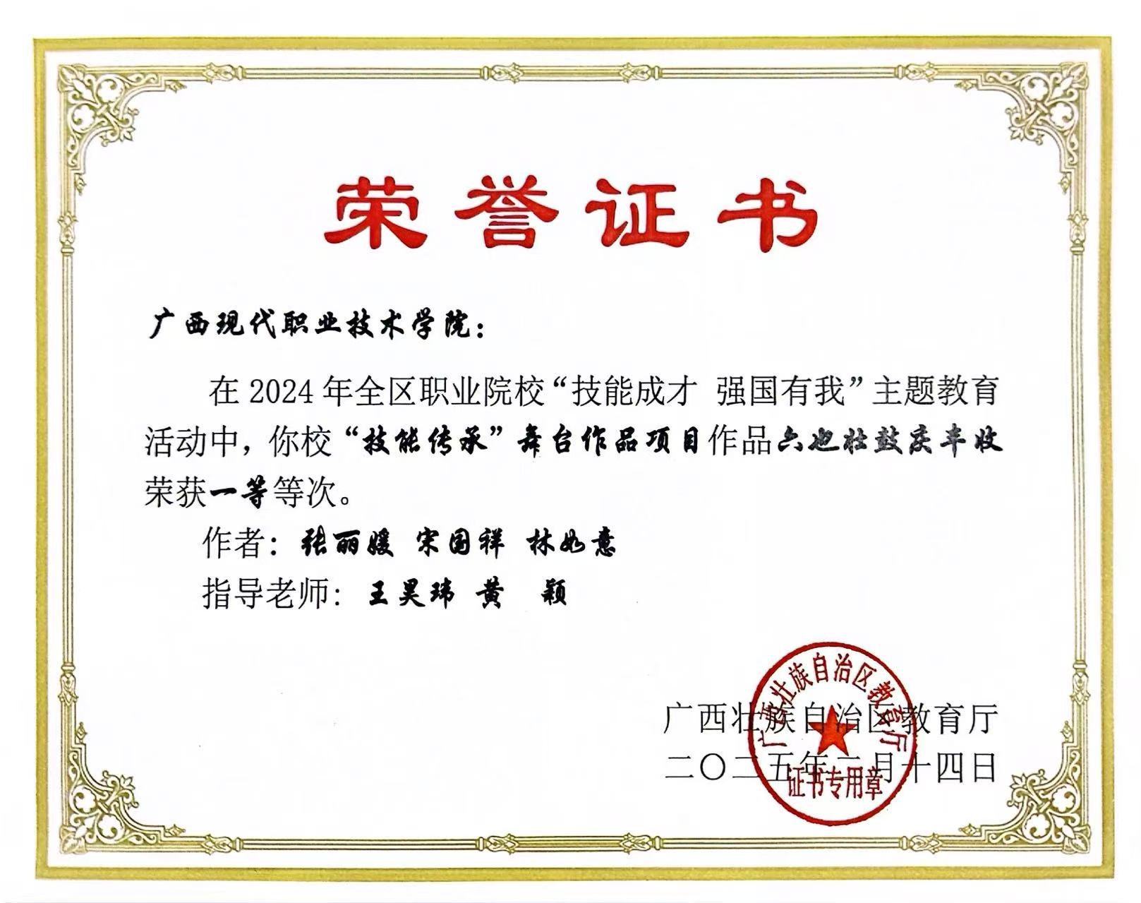 黄颖指导学生参加自治区“技能成才,强国有我”比赛获奖